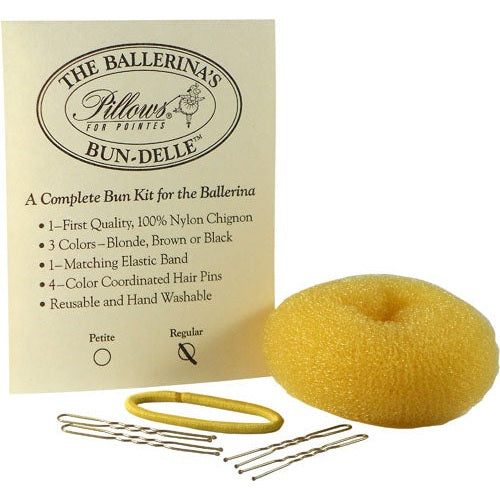 The Ballerina's Bun-Delle is your ultimate dance hair solution in one convenient kit. This complete package includes a perfectly matched chignon, elastic band, and four hair pins to create flawless ballet buns in seconds. Available in Blonde, Brown, and Black, with Petite and Regular sizing options to suit dancers of all ages. Each kit comes neatly packaged with easy-to-follow instructions, ensuring you're always performance-ready. Never struggle with your bun again!